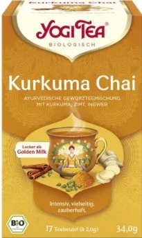 Intensiv, vielseitig, zauberhaft. 100% natürliche Zutaten, 100% Bio, Teebeutel 100% kompostierbar, recyclebare Verpackung. Mit einer Yoga-Übung auf jeder Packung und einer Weisheit an jedem Teebeutel. Der Tee für alle, die sich verzaubern lassen wollen. Kräftig goldgelb leuchtet sie, die Kurkuma-Wurzel, die in Indien schon vor 5000 Jahren als heilig galt. Kombiniert mit leckeren Chai-Gewürzen wie süßem Zimt und Kardamom strahlt ihre ganze Vollkommenheit in diesem Tee. Sein Genuss spendet exotische Wärme und wundervolle Momente. Besonders lecker auch leicht gesüßt und mit Milch/einer (veganen) Milchvariante. Für die bestmögliche Entfaltung des Kurkuma ist die Zubereitung als „Golden Milk“ empfohlen: Den Teebeutel einfach in Milch aufkochen (100 °C), anschließend für einen sicheren Verzehr mindestens 5 Minuten ziehen lassen. Dann genießen!