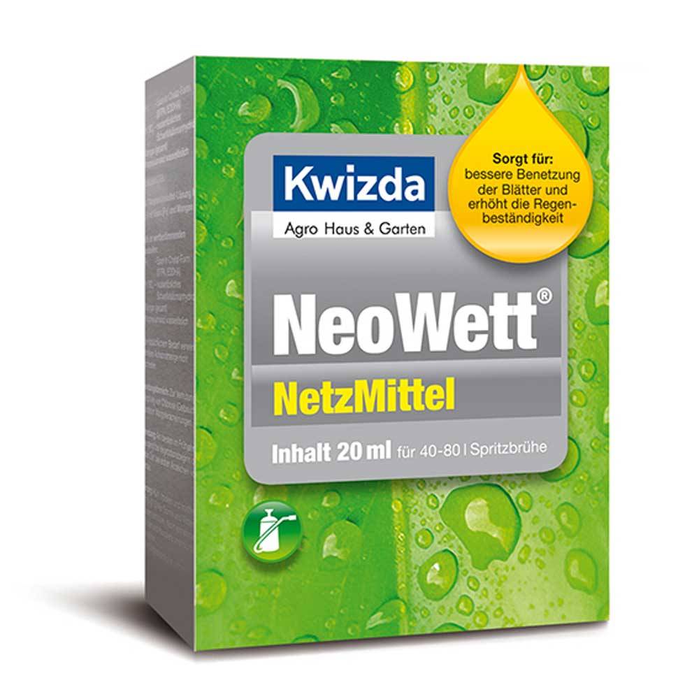 Zusatzmittel zur Verbesserung der Benetzungsfähigkeit von Blättern und Erhöhung der Regenbeständigkeit von Spritzbrühen. NeoWett eignet sich besonders als Zusatzmittel für alle Insektizide und Rasenherbizide.