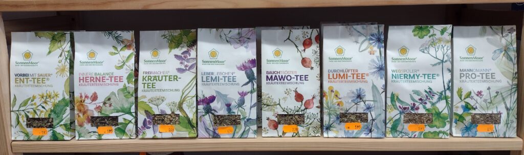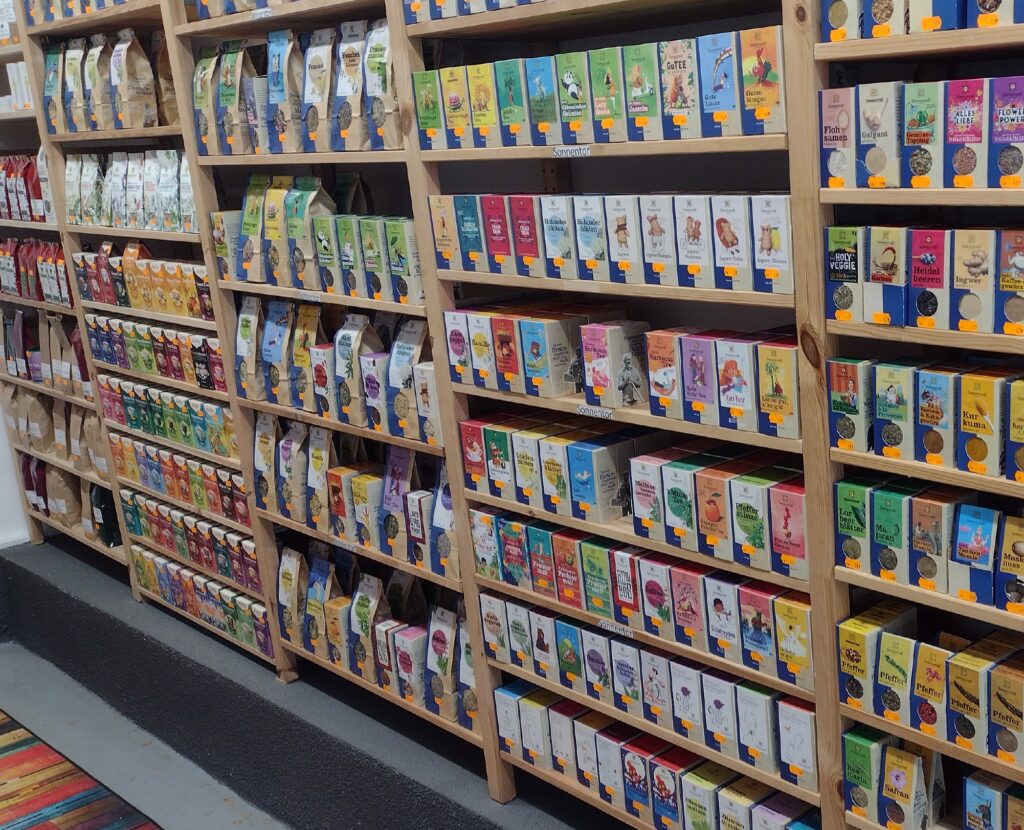 Unser Teeangebot ist sehr umfangreich. Unsere Stärke sind (nicht nur) die Gewürztees. Vor allem bei Sonnentor-Tees ist die Auswahl riesengroß! Und neu gibt es jetzt auch Kräutertees von SONNEN-MOOR. Sie sollten unbedingt ins Geschäft kommen…