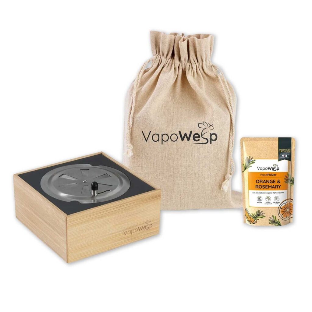 - 1x VapoWesp Räucherbox (Kistchen aus Bambusholz (15x15x7cm). Schale und Deckel (mit regulierbaren Lüftungsschlitzen) aus Edelstahl.