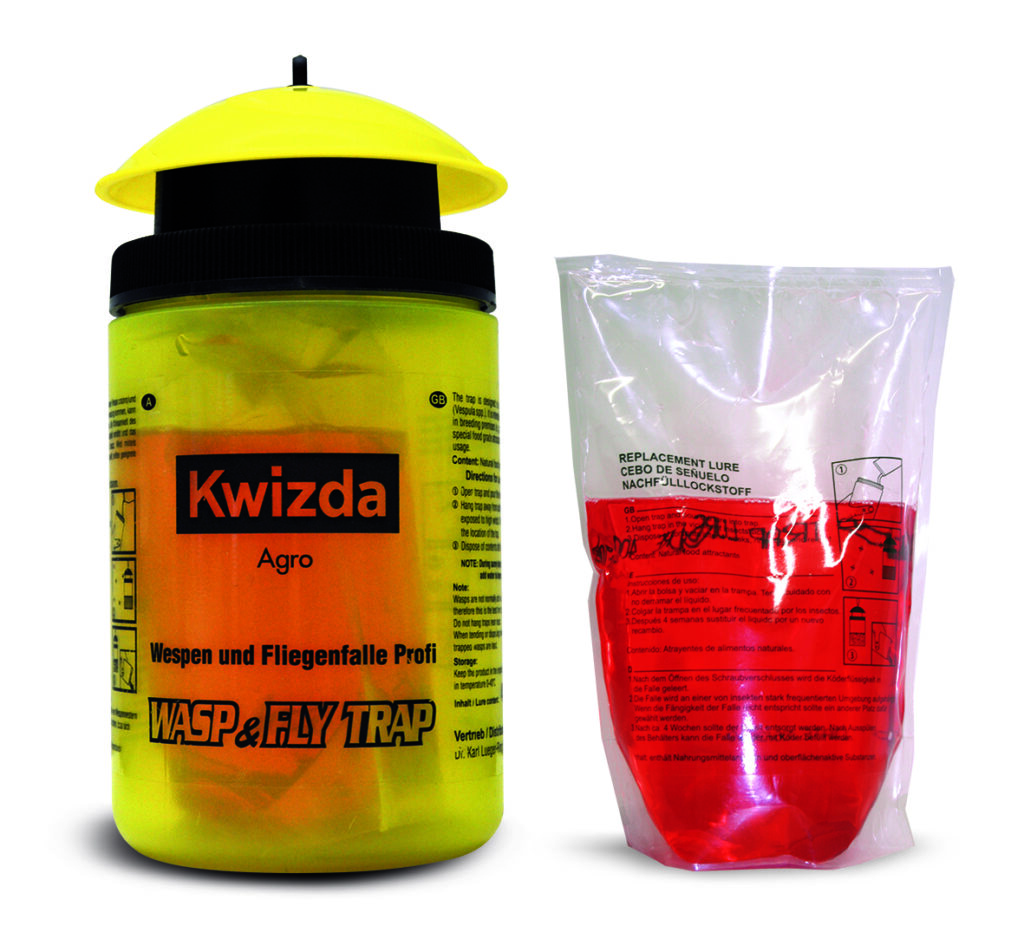 Wespen-und Fliegenfalle auf Basis von Nahrungsmittelaromen. Lockradius 5-6- Meter, ca. 3-4 Wochen einsatzbereit. Die Einflugsöffnungen können bei Bedarf geschlossen werden.