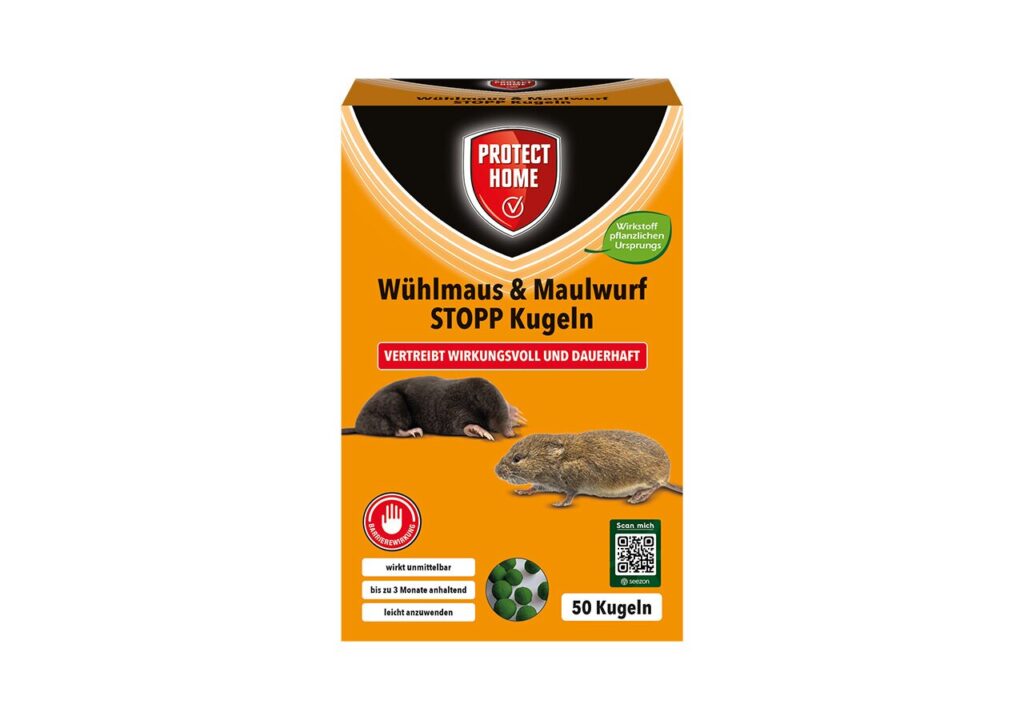 Wirksame Vertreibung von Wühlmäusen und Maulwürfen rund um das Haus. Die leicht dosierbaren Kugeln enthalten Geruchsstoffe, die sofort nach dem Ausbringen beginnen, die Schadnager zu vertreiben. Die Wirkung hält bis zu 6 Wochen an. Dadurch wird neben der akuten Vertreibung auch ein Neubefall verhindert.