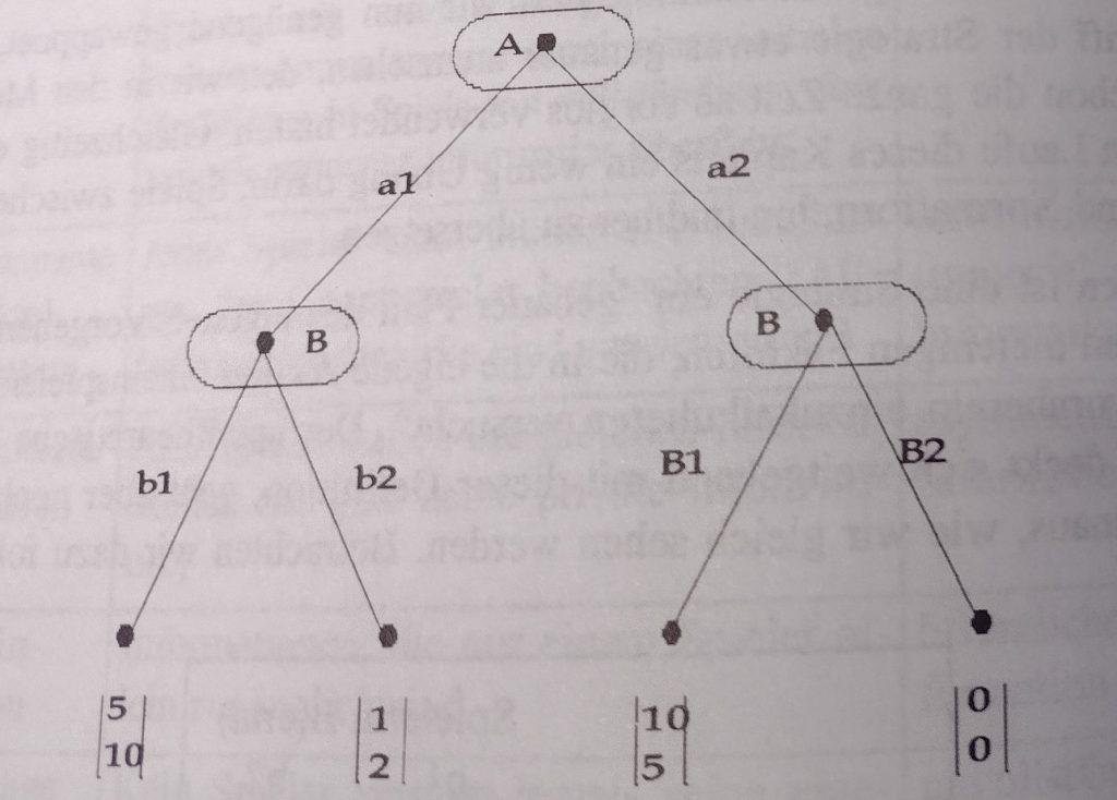 A hat 2 Alternativen zur Verfügung und er möchte das bestmögliche Ziel erreichen. Und das ist knifflig: wählt er die Handlung a1, dann wird B als Antwort Variante b1 wählen (die Variante b2 sowieso nicht) und er bekommt 5 Einheiten (Geld, Stimmen, Waren), und der B staubt 10 Einheiten ab. Also erscheint die Variante a2 die bessere Strategie zu sein. Hier hat jetzt B die Qual der Wahl. Er kann maximal 5 Einheiten erreichen, hätte A a1 gewählt, hätte er 10 Einheiten bekommen. Er ist also ein bisserl „angefressen“ auf A. B ist versucht, Variante B2 zu wählen, aus Ärger. Da bekommt keiner was! Aber wird er das wirklich tun? A kann mit seiner Variante a2 unbesorgt sein: B wird sich sagen, 5 sind besser als nichts und wählt B1. Der A aber streift dank seiner guten Strategie 10 ein..Spannend? oder?